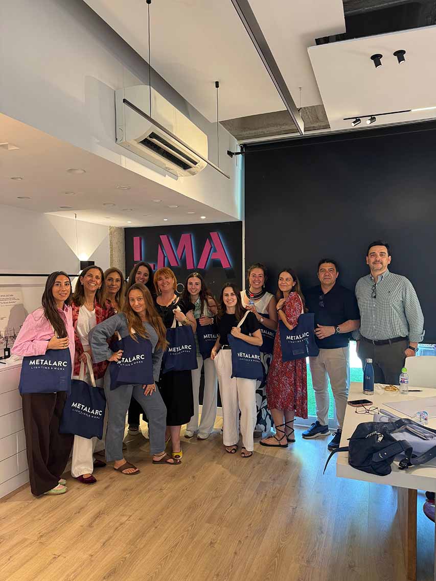 Nuestra primera parada fue el estudio LMA Iluminación, de Félix Santos, profesor de la asignatura de Iluminación y un auténtico experto en la materia. Allí nos recibieron él, y sus socios que a su vez son familia —su mujer y su hijo—, que forman parte activa del estudio. La acogida fue cálida y cercana, y enseguida nos sentimos como en casa.