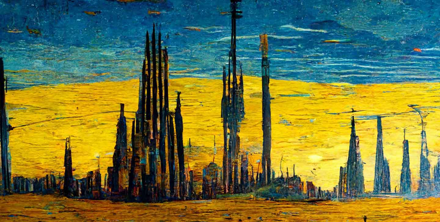 imágenes hiperrealistas o adaptadas al estilo específico de un artista (y es aquí donde se empieza a difuminar la línea de la autoría, pero esto es tema para otra reflexión). Por ejemplo, aquí les muestro el resultado luego de que a Midjourney le indiqué que generara una imagen de una Barcelona Futura pintada por Van Gogh: